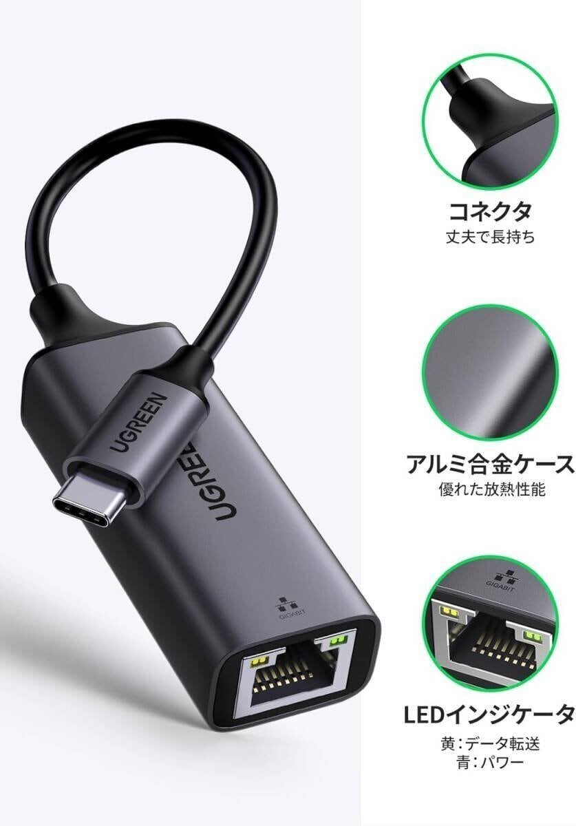 USB-C LAN 有線LANアダプター OTG機能対応 1000Mbps高速 USB-C to RJ45 ギガビットイーサネット Thunderbolt 3搭載 Mac PC