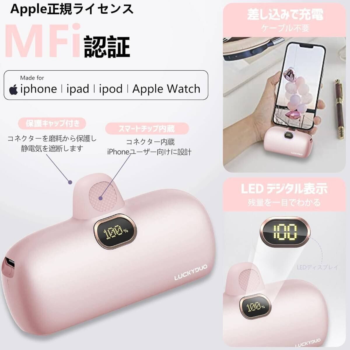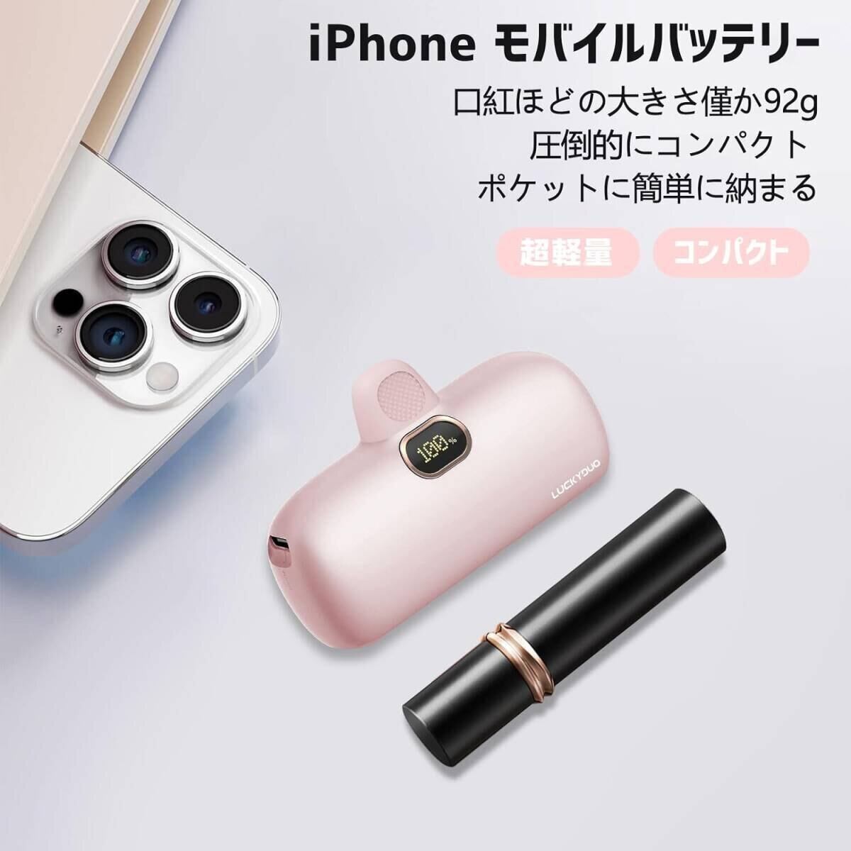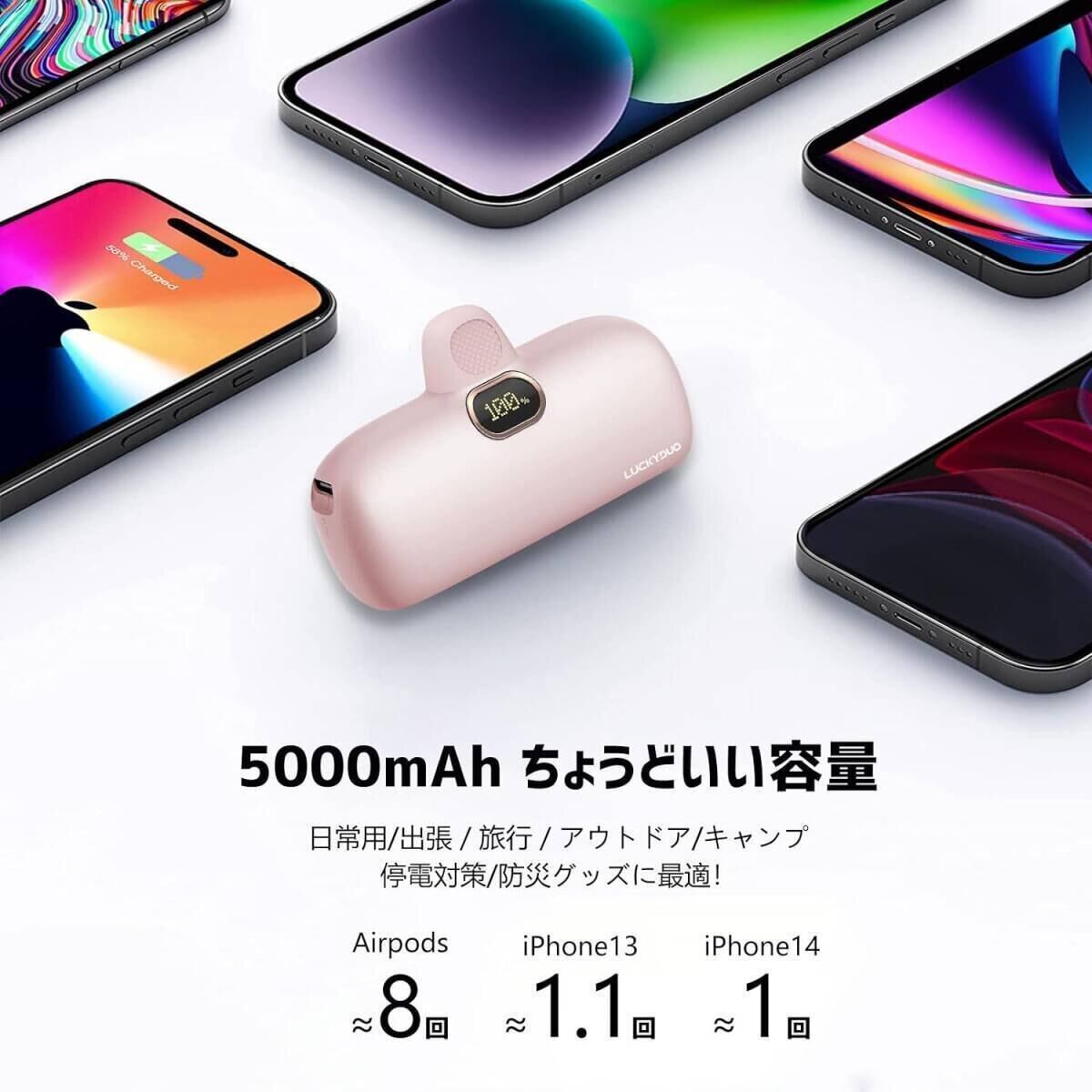 モバイルバッテリー 小型 iPhone 5000mAh コネクター内蔵 コードレス 軽量 直接充電 急速充電 モバイルバッテリー iPhone