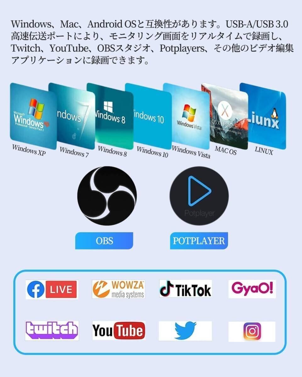 USB 3.0 HDMI ゲームキャプチャー 1080P60Hz 電源不要 ゲーム実況生配信 画面共有 HDMI変換アダプタ Windows Mac Switch
