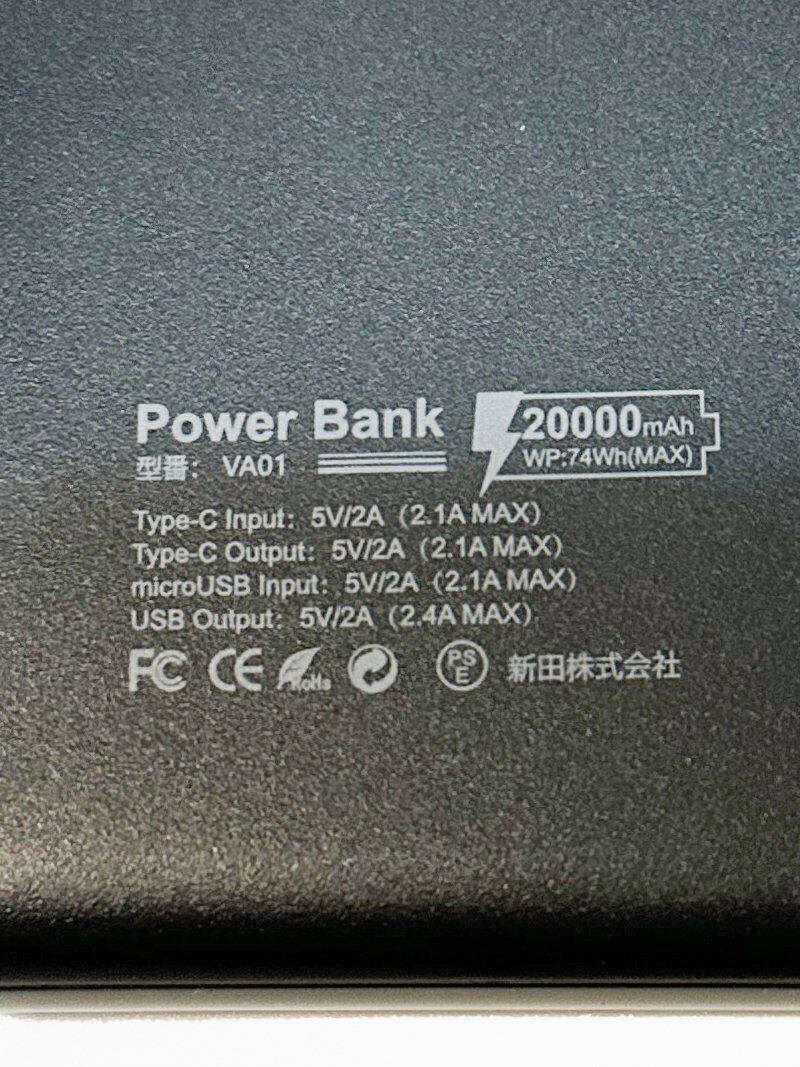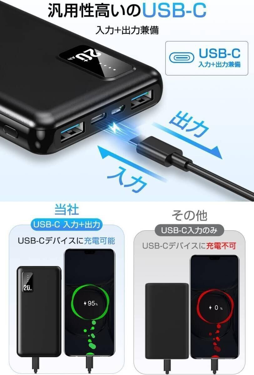 モバイルバッテリー 20000mAh 大容量 同時充電可 type-C 2USBポート スマホ充電器 iPhone Android 停電対策