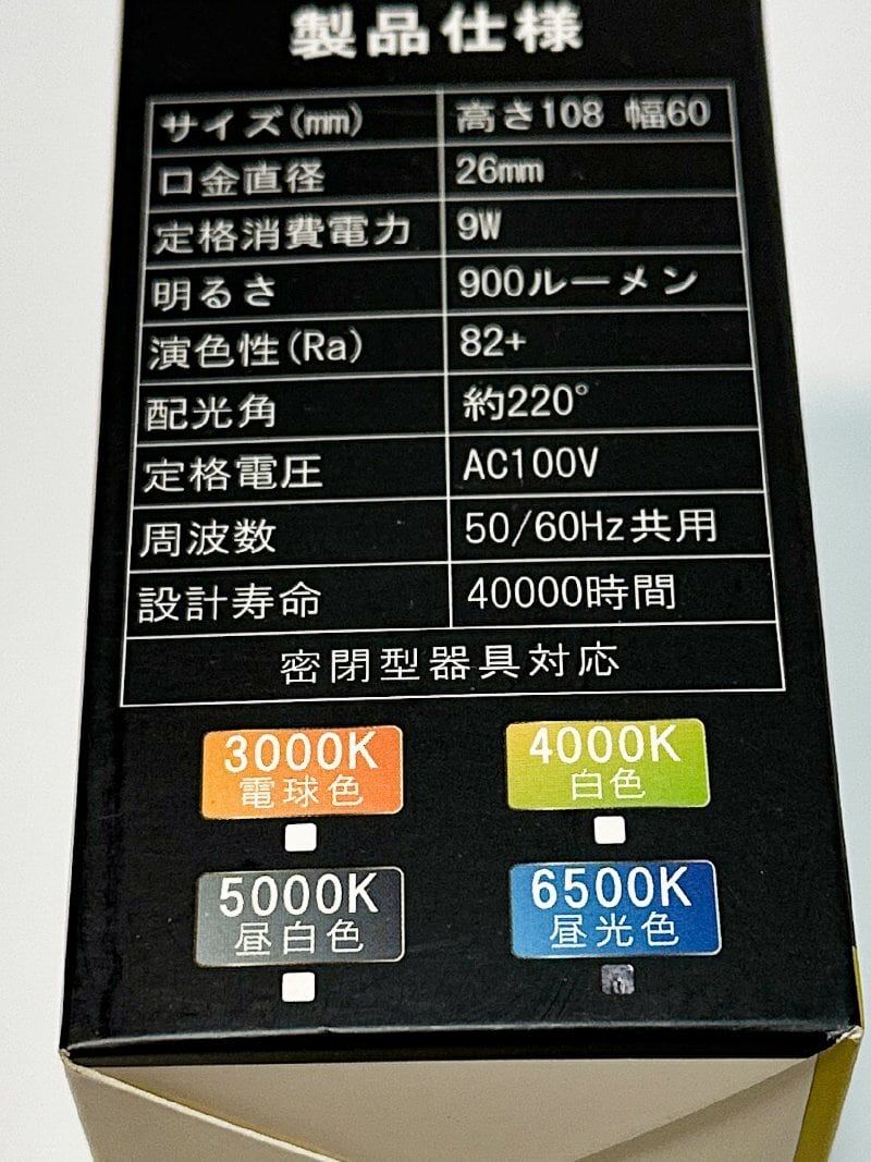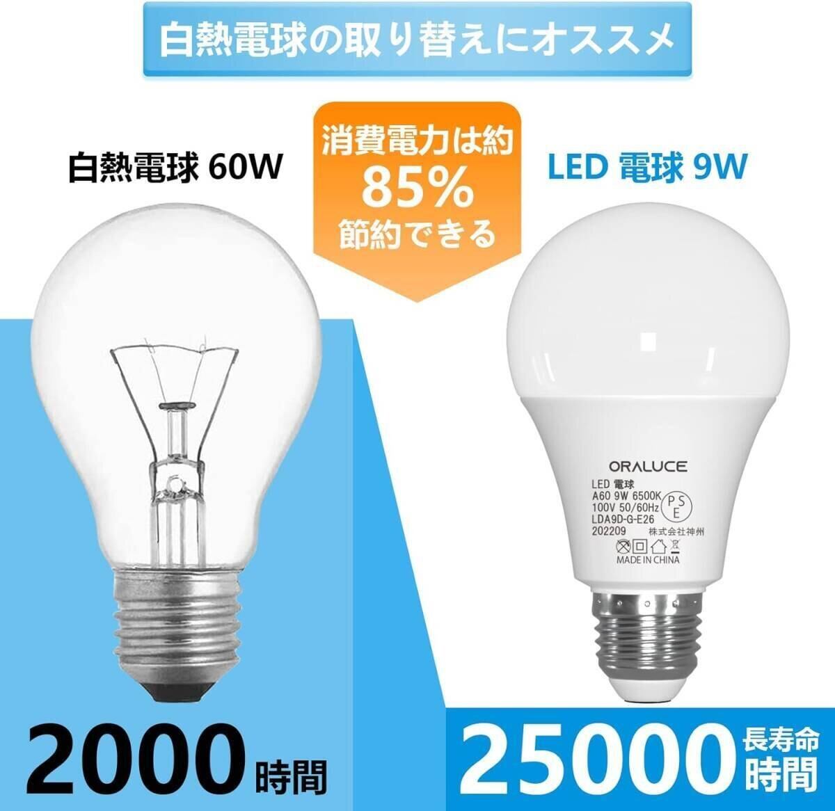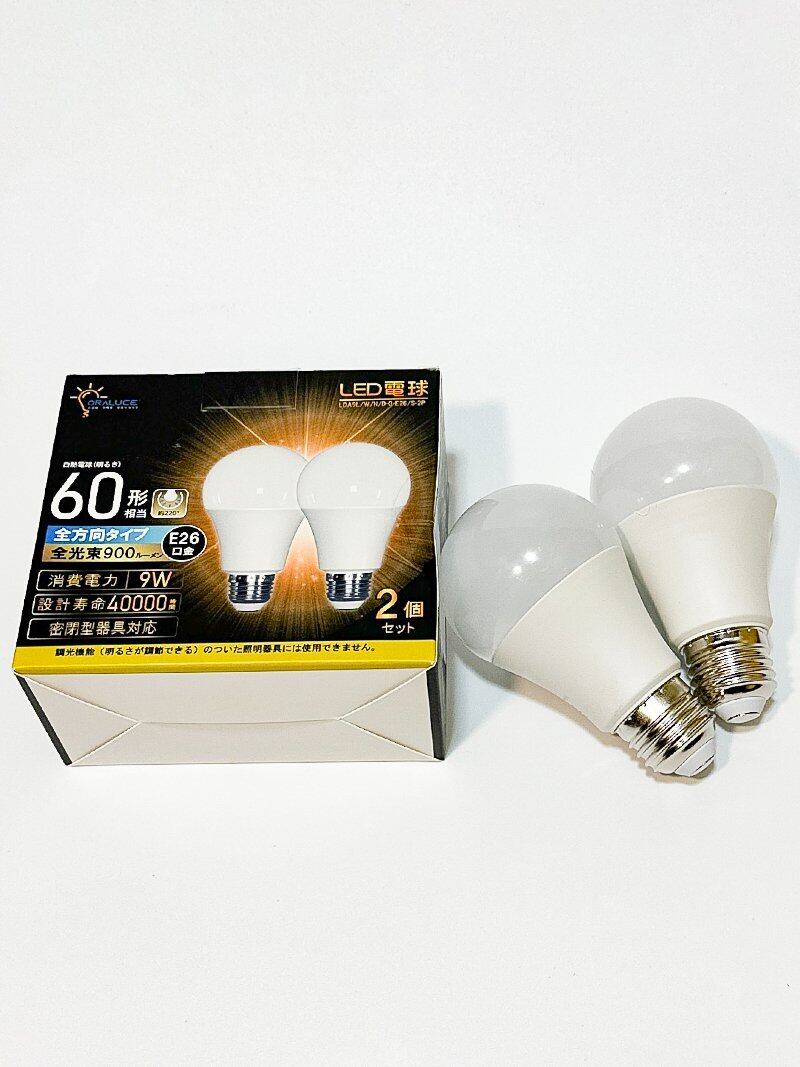 ORALUCE LED電球 E26口金 昼光色 9W 900lm 60W相当 6500K 220度広配光 高演色 密閉型器具対応 調光不可 2個入