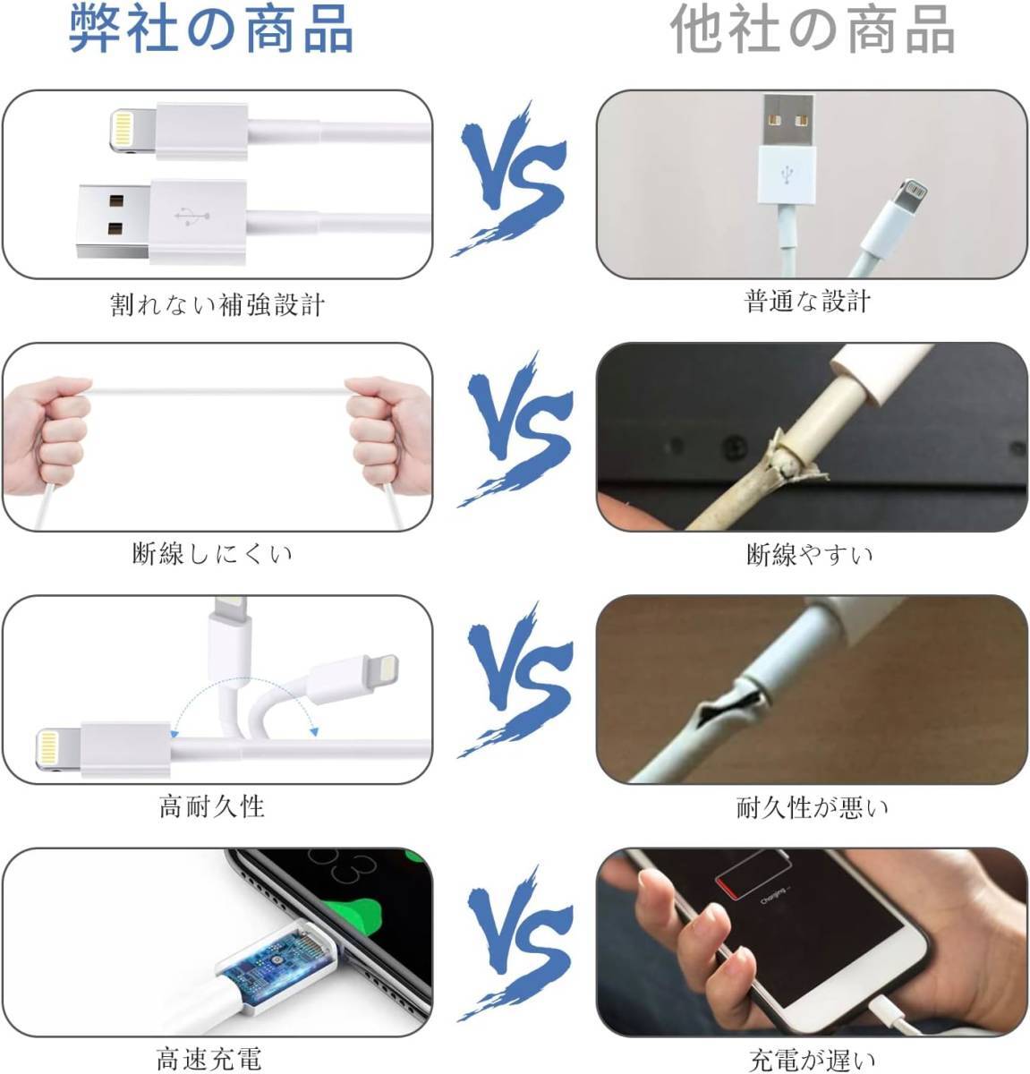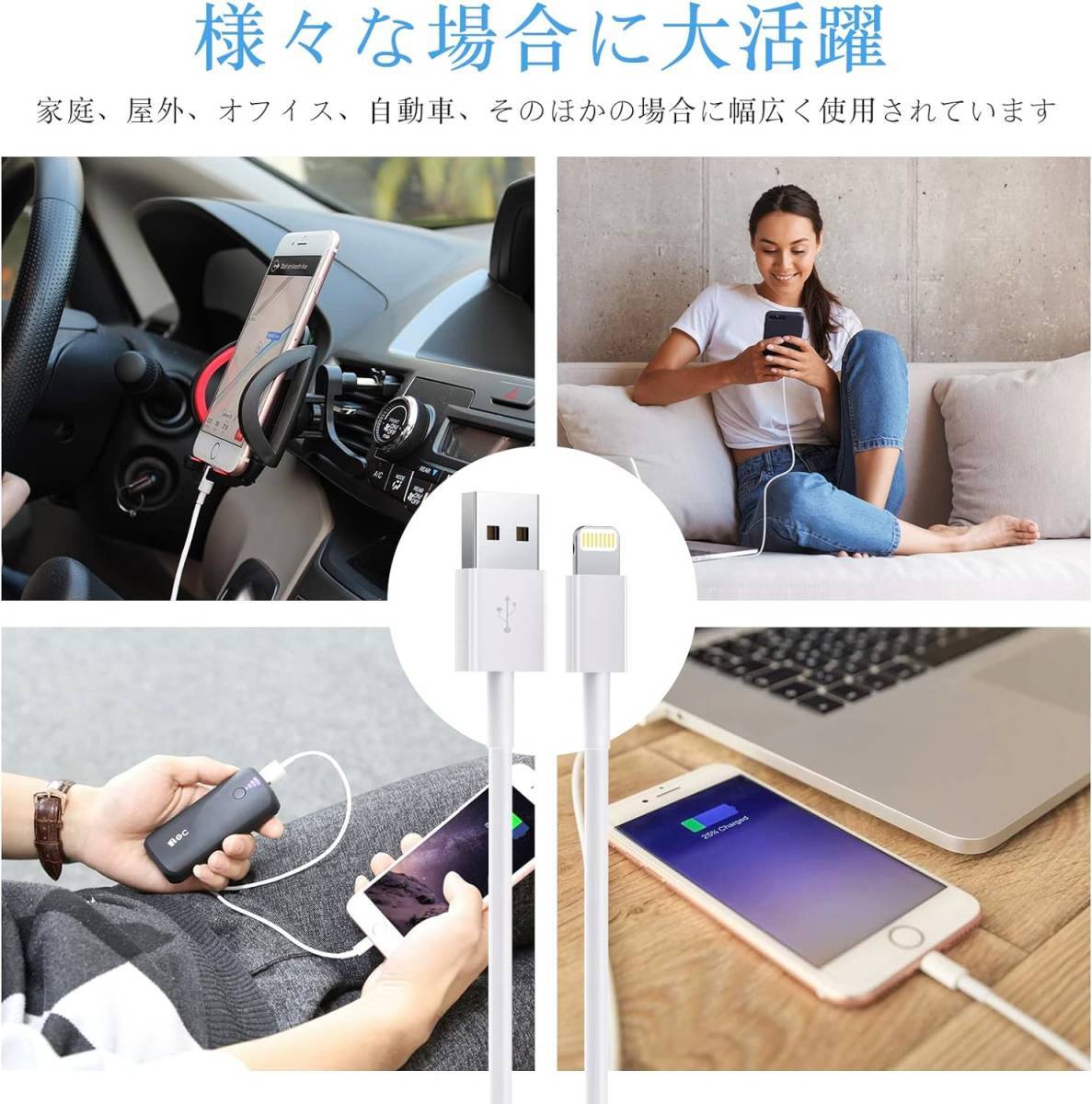 MFi認証品 iPhone 充電ケーブル ライトニングケーブル 互換製品 1M 4本セット 2.4A急速充電 USB 高速データ転送