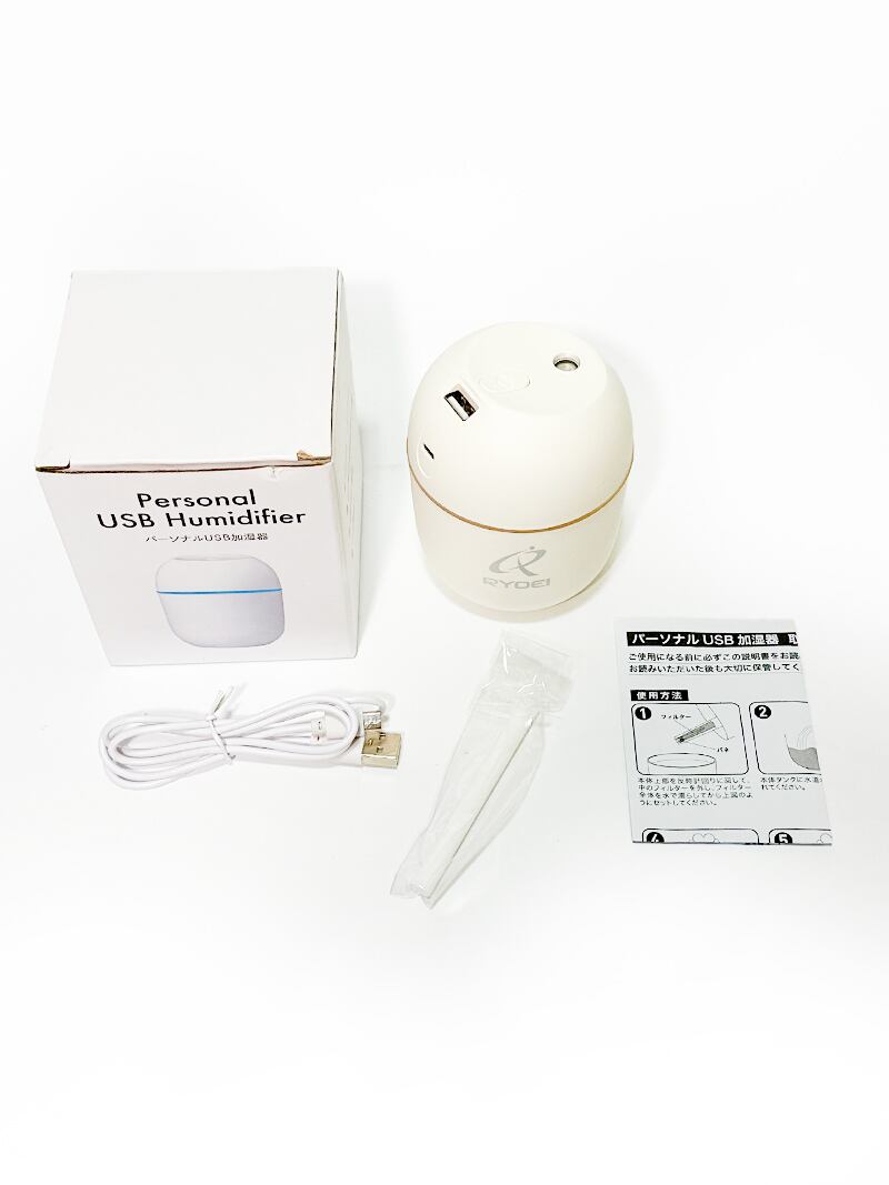 パーソナル USB 加湿器 イルミネーションライト 静音 超音波式 自動OFF 動作確認済 小型 ケーブル/替え芯付き