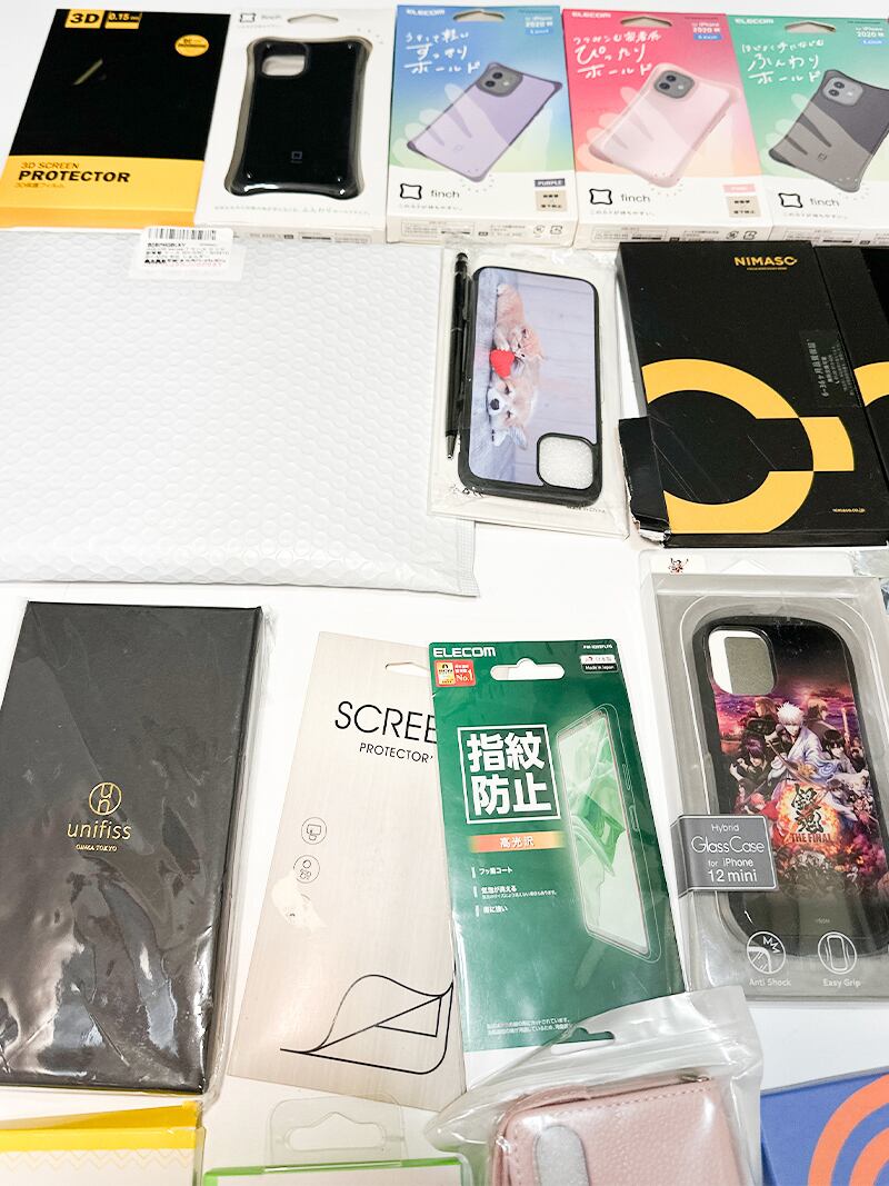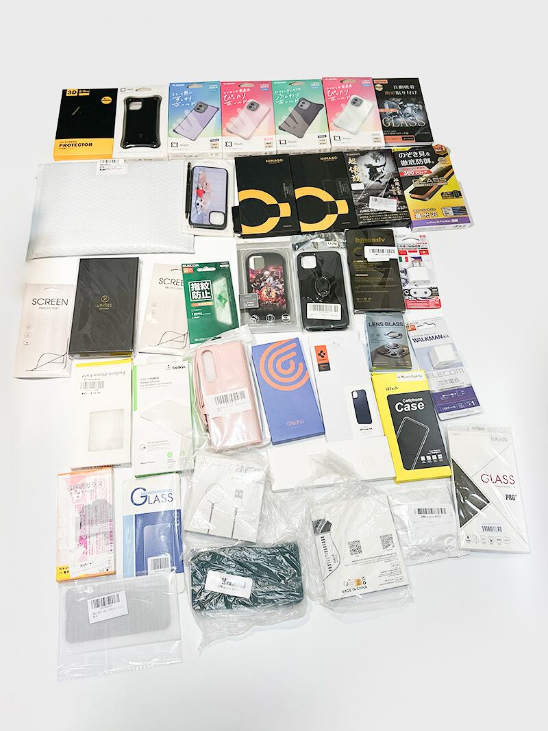 iPhoneやスマホ用のケースやフィルムなどのまとめ売りとなります。