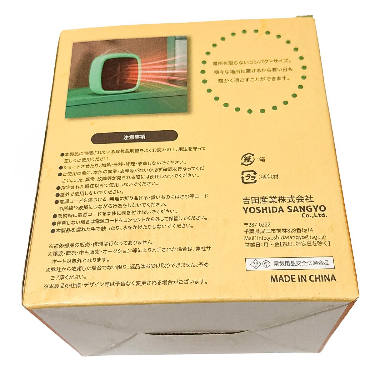 吉田産業株式会社の小型ファンヒーターになります。