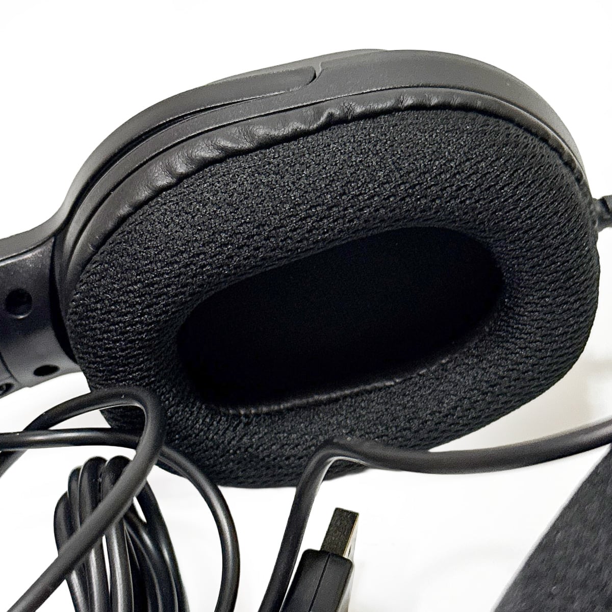 両耳オーバーヘッドタイプ、手元でミュートや音量調整が出来るコントローラー付き。