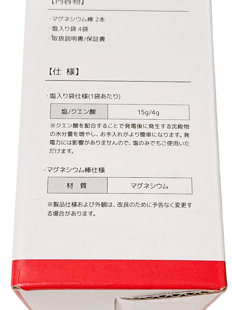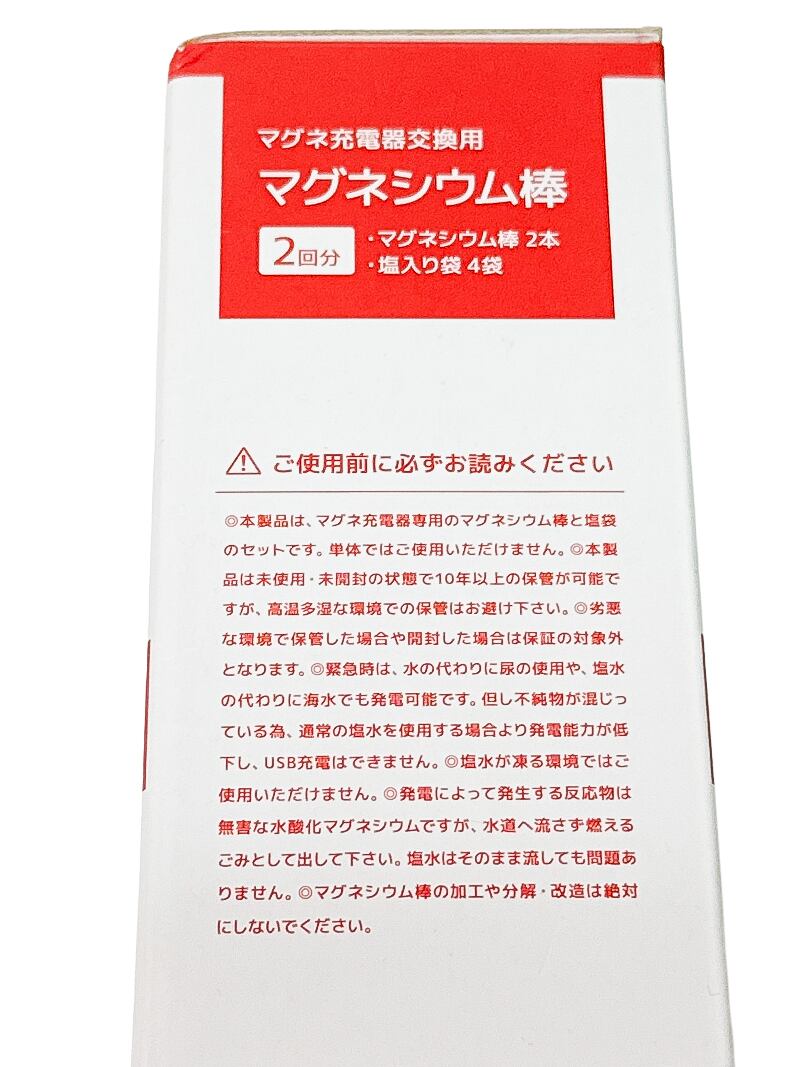 マグネシウム棒1本を全て充電に使用した場合、充電容量2500mAhのスマ?トフォンだと、約2.5回(目安値)の充電が可能!!