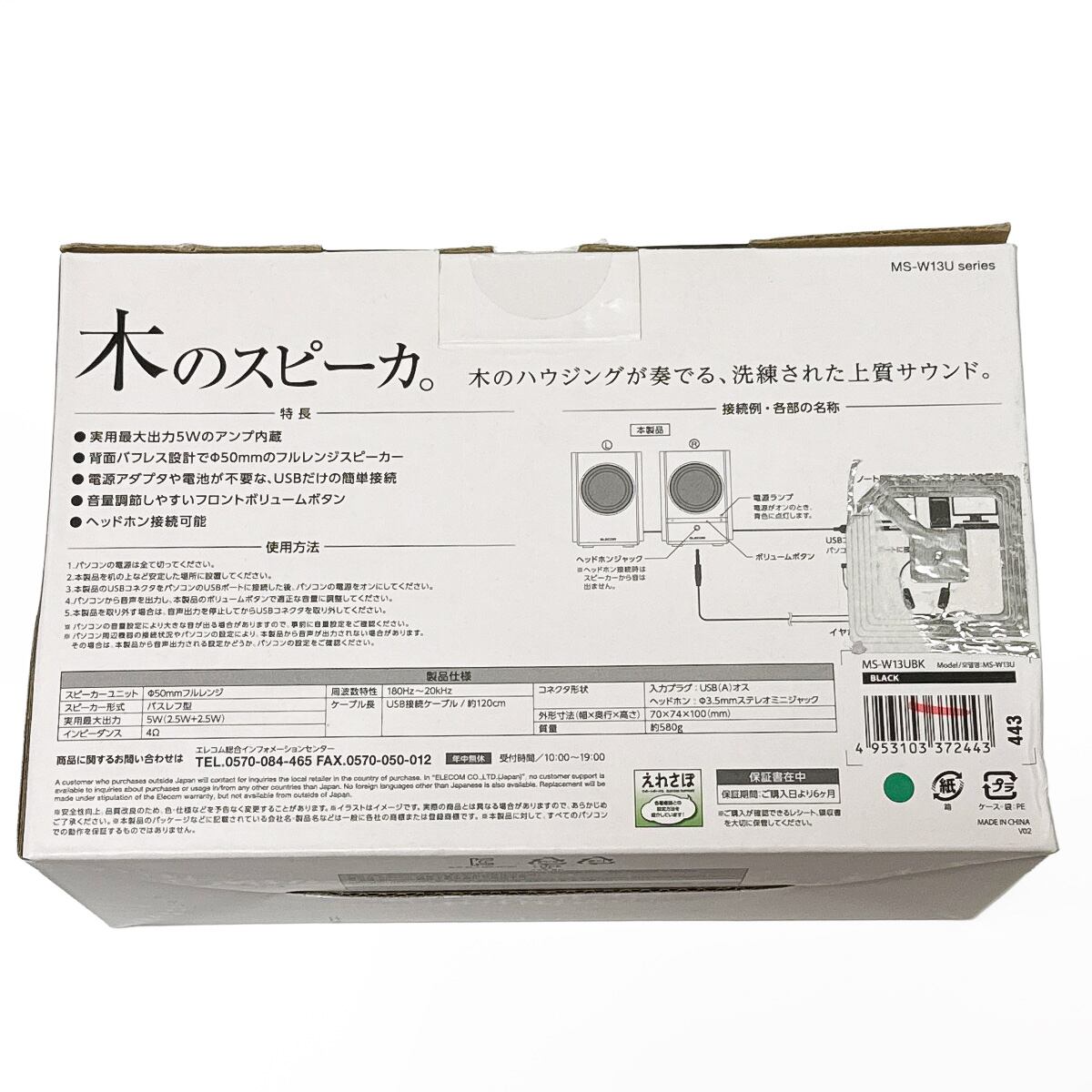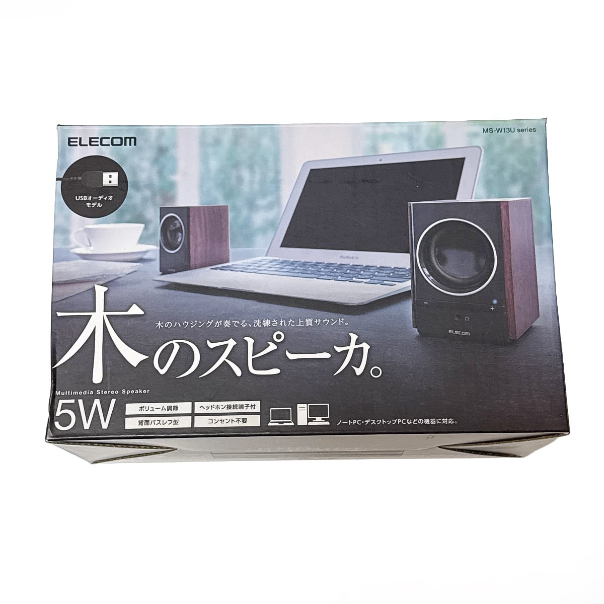 エレコム パソコン用 2.0ch 木のスピーカー USB音声入力タイプ MS-W13UBK 最大出力5.0Wのアンプ内蔵