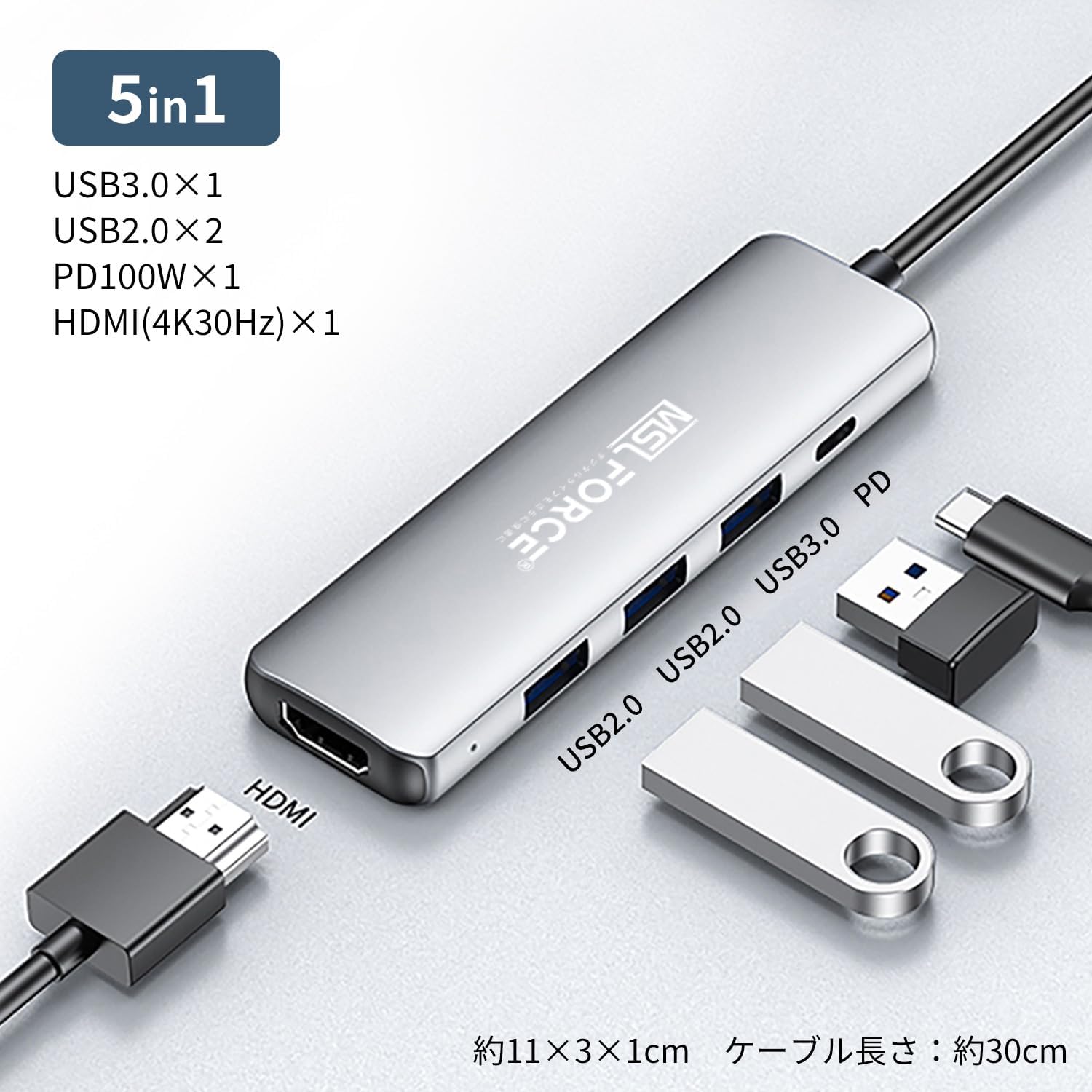 MSL FORCE USB-C 5in1 多機能ハブ 5Gbps USB3.0/2.0 4K@30Hz 急速充電 HDMI 動作品