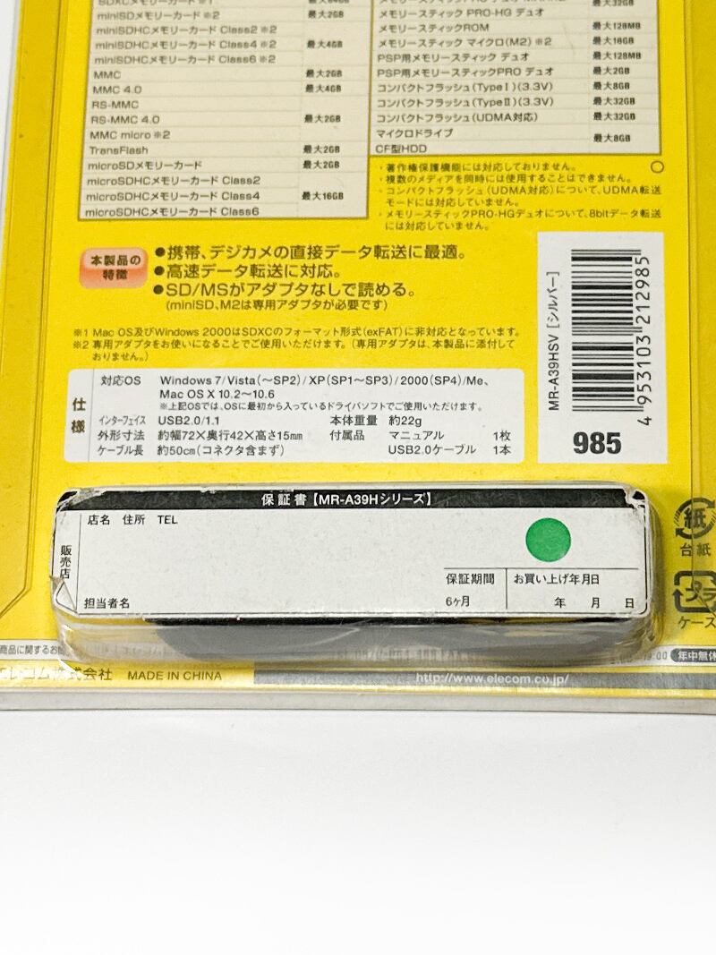 エレコム Elecom 48メディア対応 メモリーカードリーダー MR-A39HSV SDXCメモリーカード対応