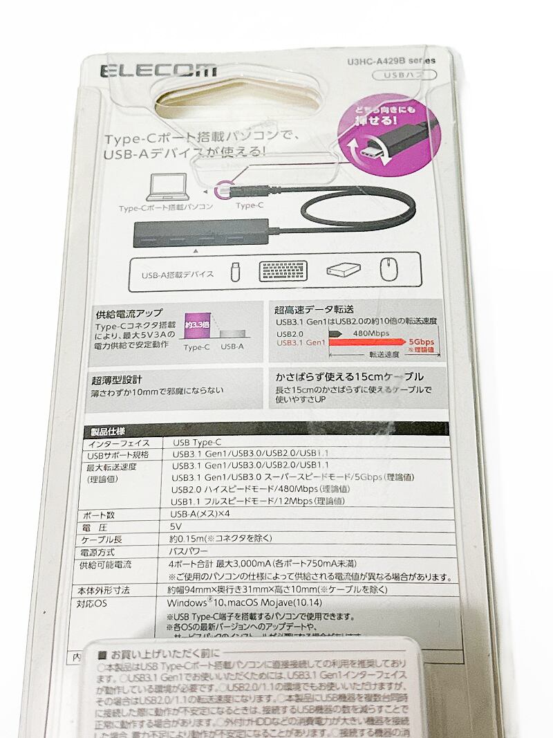 エレコム Elecom USB Type-C接続 4ポート USB3.1ハブ U3HC-A429BXBK 超薄型設計