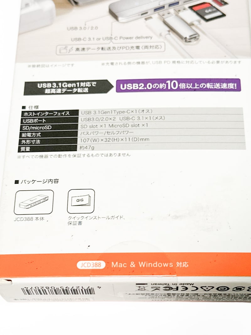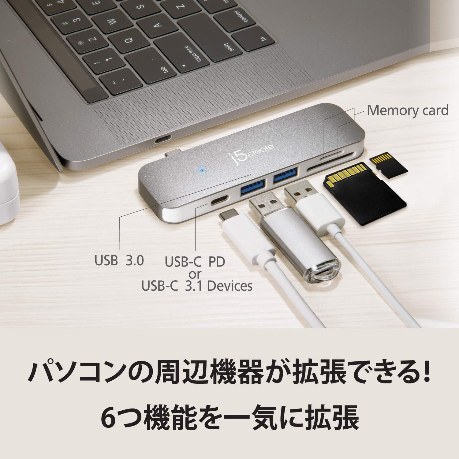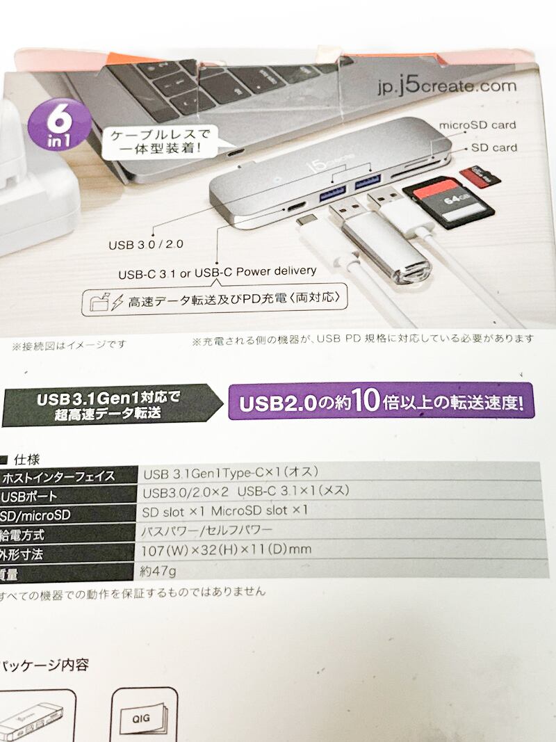JCD388 USB Type-C ハブ 6-in-1 USB3.1/3.0 microSD SDカード 5Gbps 一体型 小型