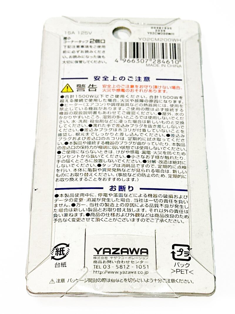 ヤザワコーポレーション 極小コーナータップ プラグ形状2P・スイングプラグ