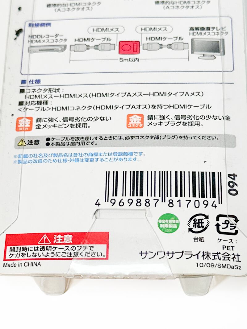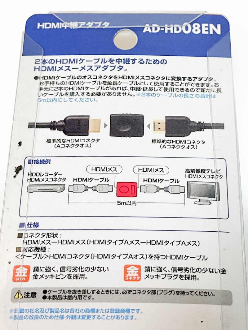 サンワサプライ HDMI中継アダプター 2本のHDMIケーブルを中継 HDMIメス-メス 小型 延長 廃盤品 AD-HD08EN