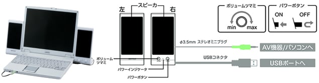 スピーカー本体にアンプを内蔵、ステレオミニプラグをパソコンに接続するだけで簡単にお使いいただけます。