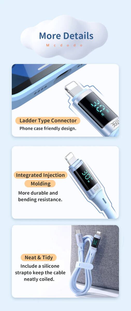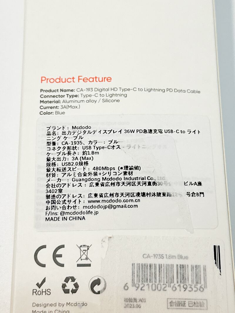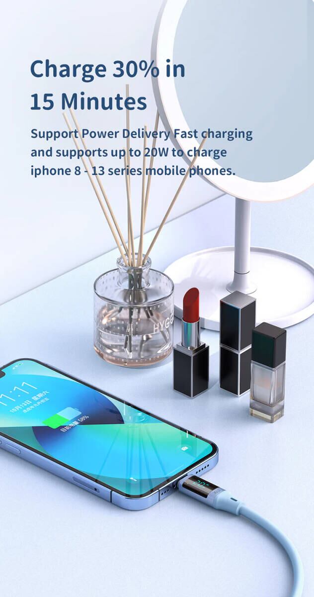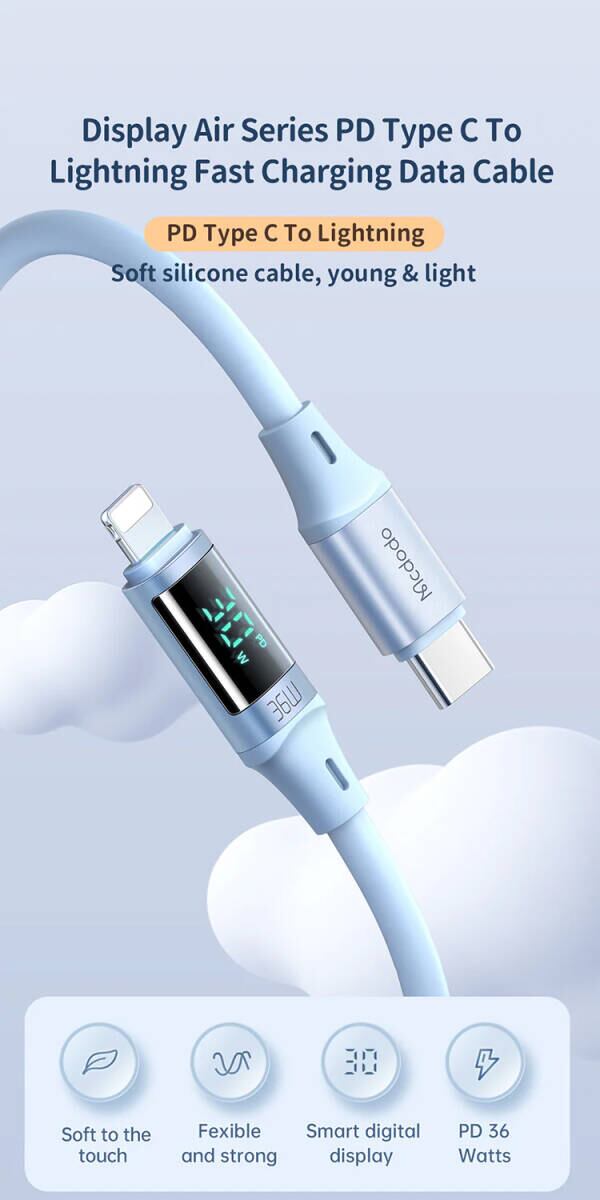 Digital HD USB-C Lightning 36W ケーブル 1.8m 急速充電 充電 データ同期 出力表示 ライトニング タイプC iPhone