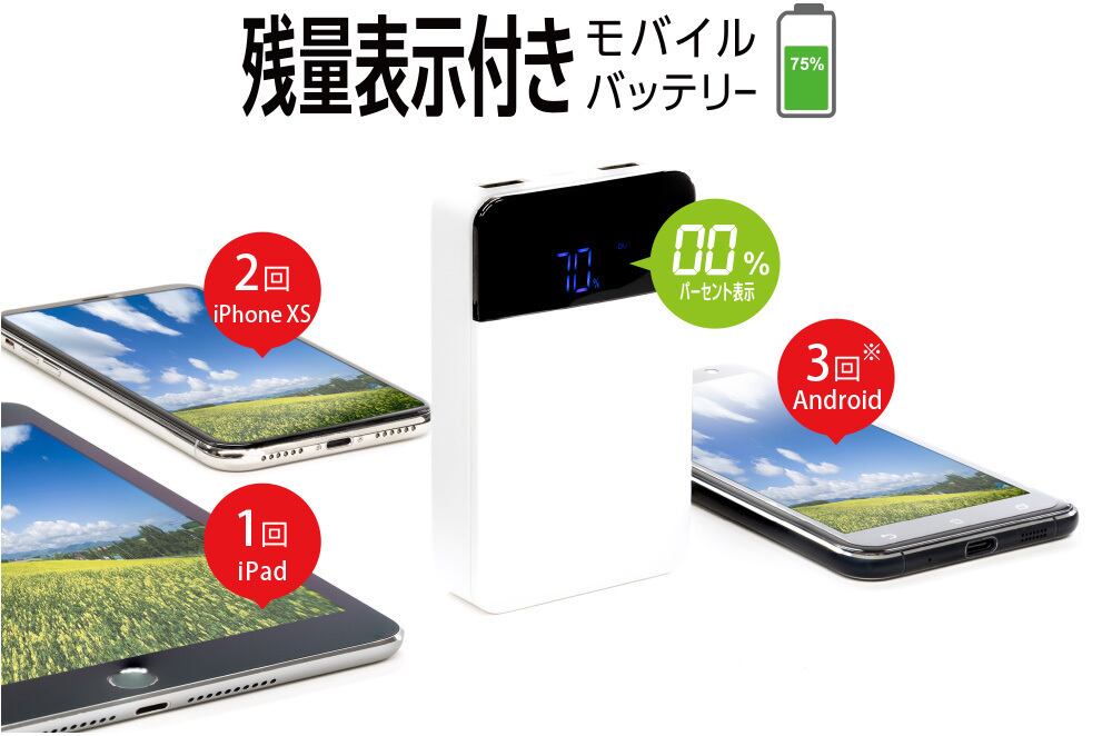モバイルバッテリー 10000mAh GH-BTF100 残量表示 iPhone スマートフォン Nintendo Switch 同時充電 小型 コンパクト