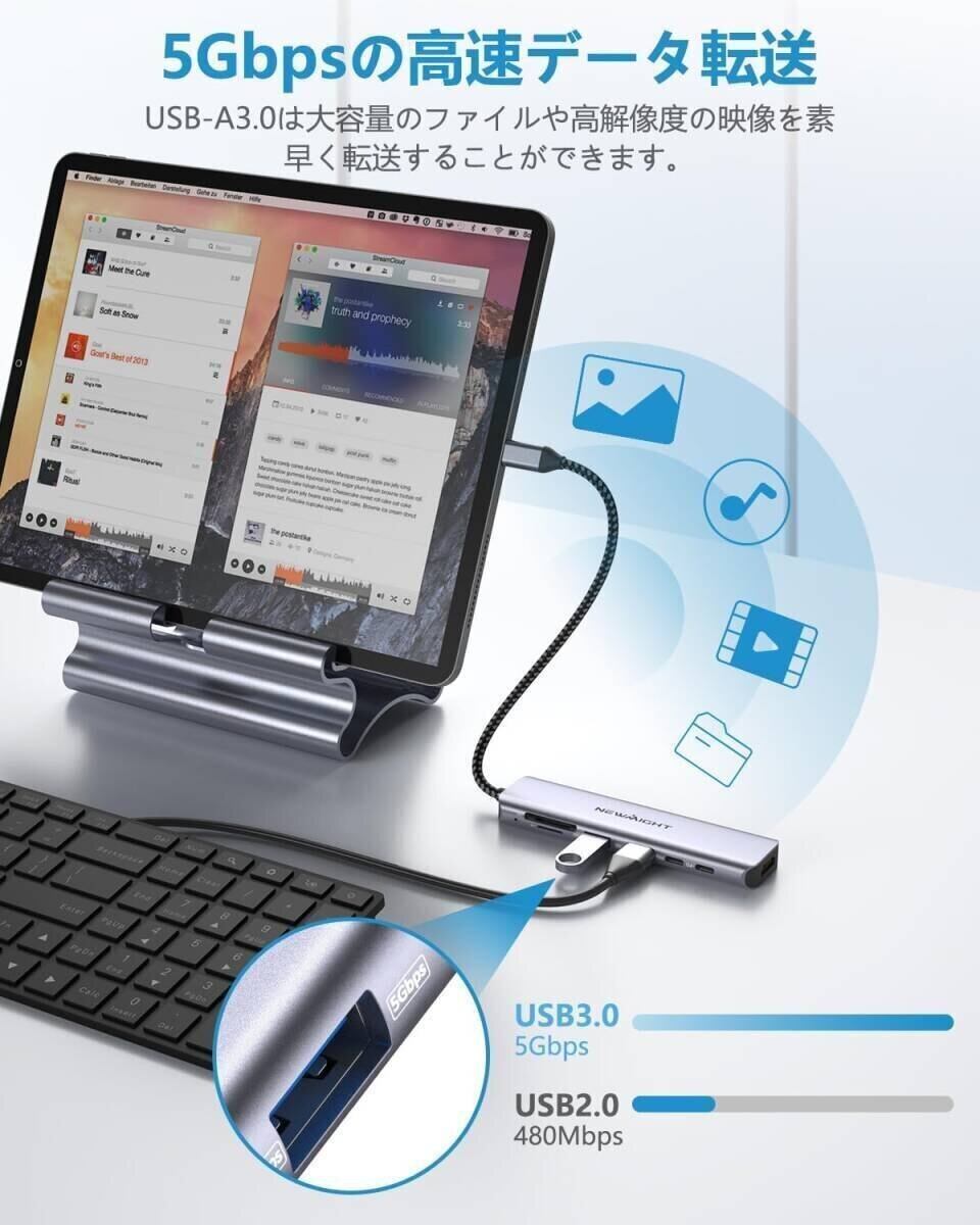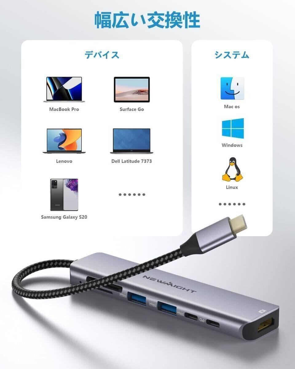 USB-C ハブ 7-in-1 アダプタ hdmi type-c ハブ usbハブ USB-A 高速データ転送 PD 100W 急速充電 SD/TFカードスロット Mac
