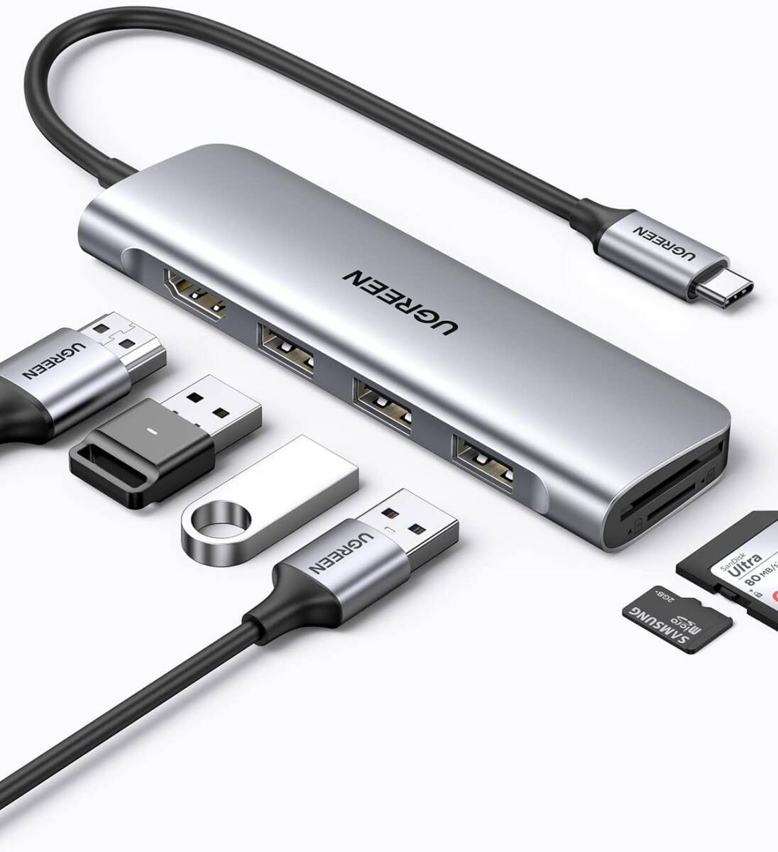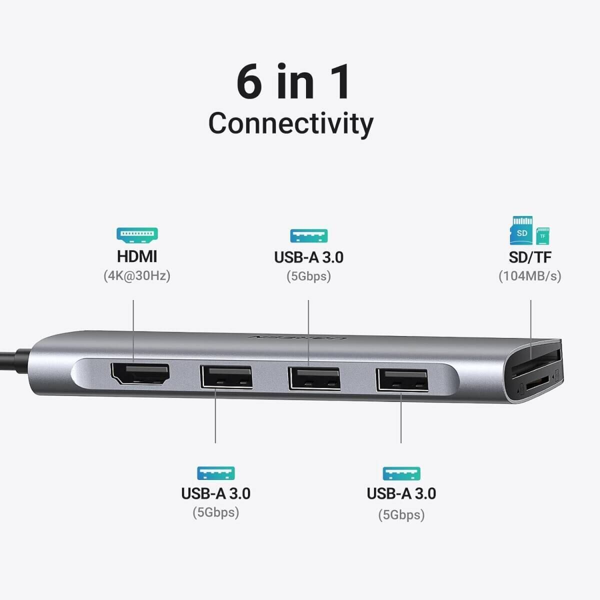 USB-Cハブ 6 in 1 USB C to HDMI 4K SD TFカードリーダー Type c マルチ変化だアダプター 3ポートUSB3.0 HUB Mac Galaxy