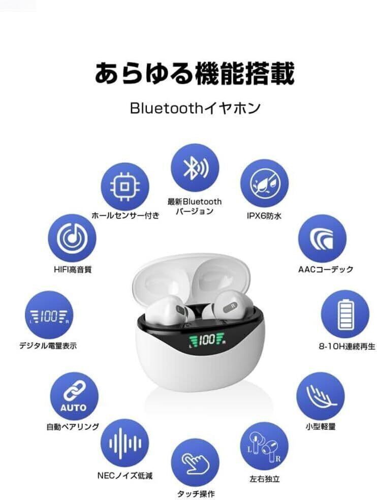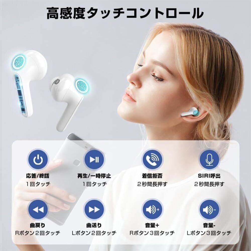 ワイヤレスイヤホン Bluetooth5.3 Hi-Fiステレオ ENCノイズキャンセリング AAC対応 IPX7防水 通話 マイク内蔵 左右分離型