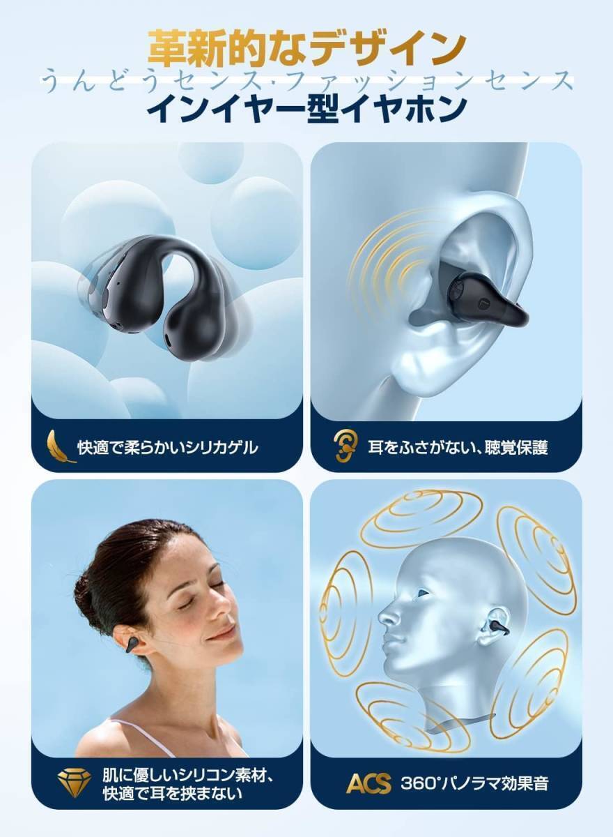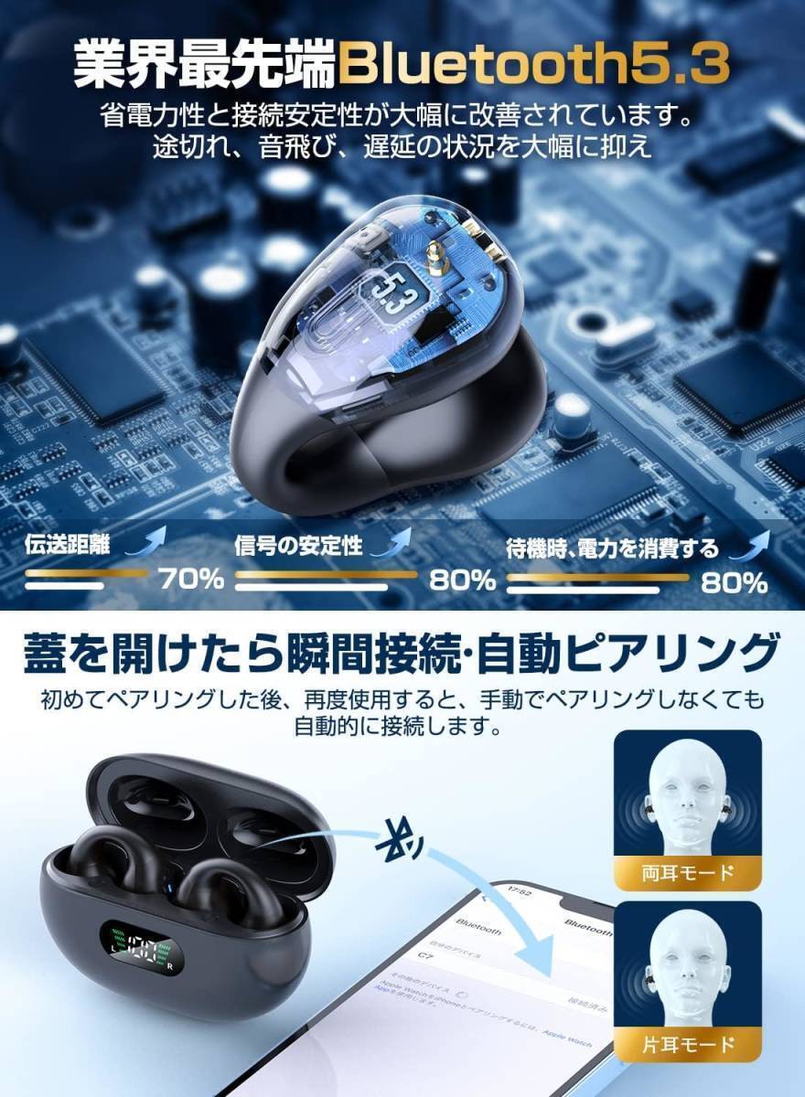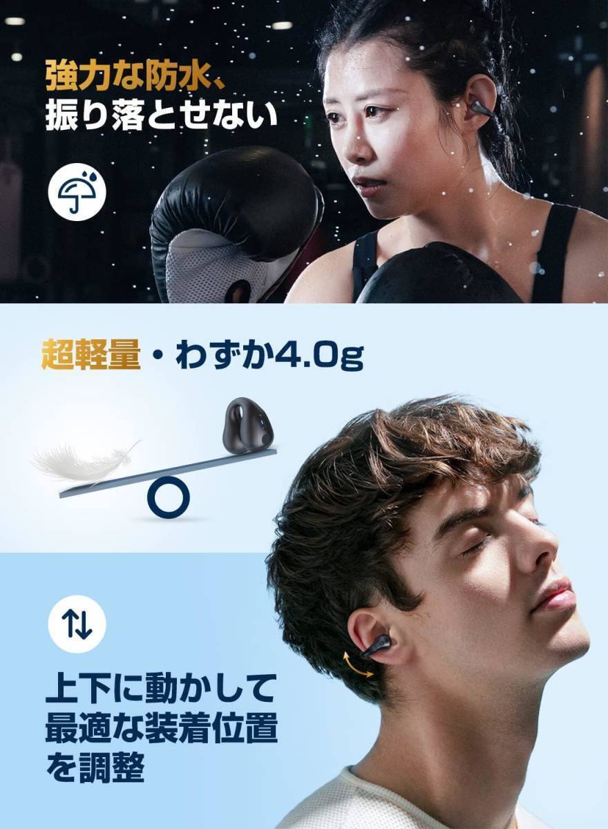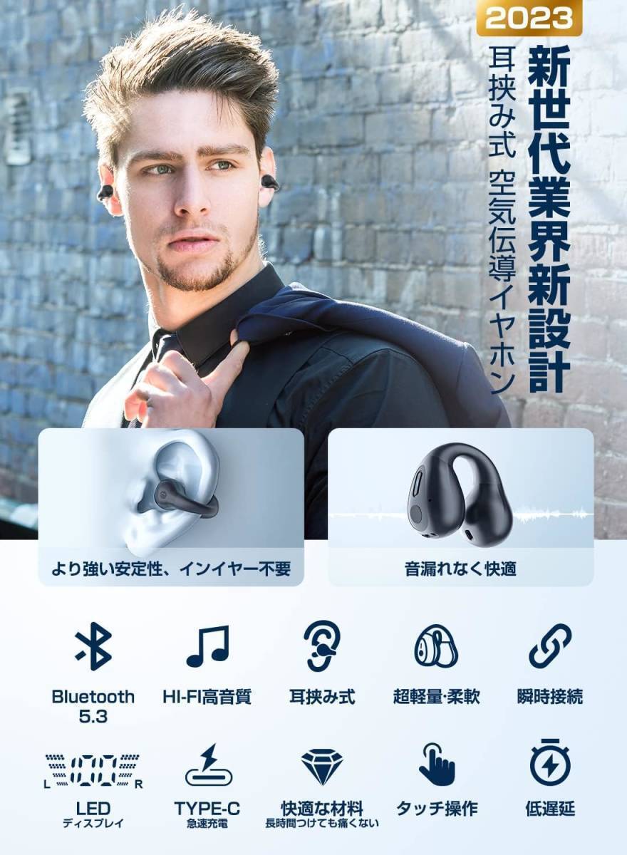 ワイヤレスイヤホン 空気伝導 Bluetooth 5.3 + EDR ENCノイズキャンセリング Hi-Fi音質 最大40時間 マイク 骨伝導